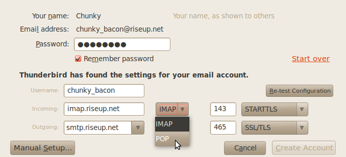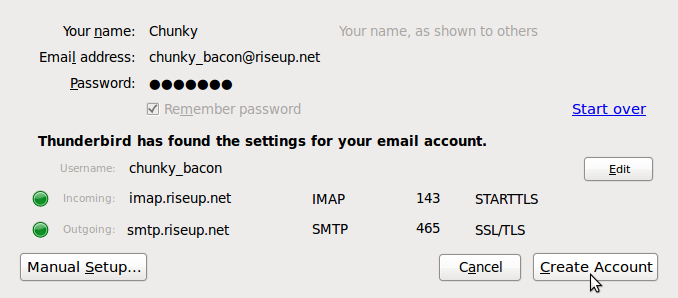 Thunderbird will pull the settings from riseup’s servers.